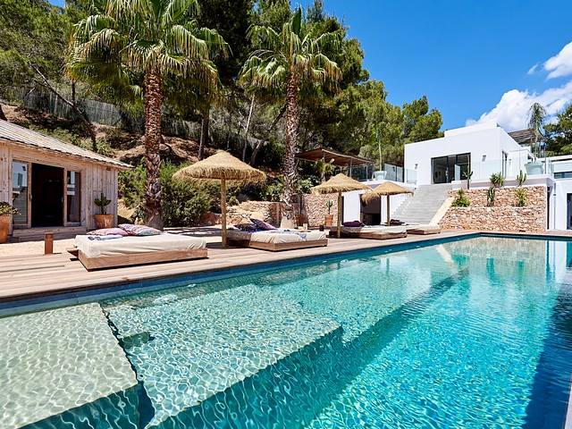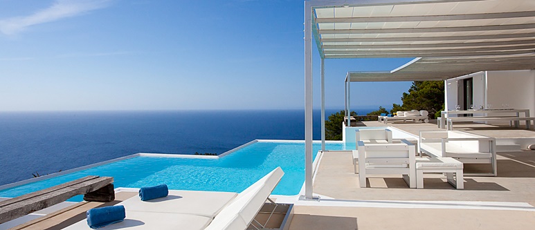 Beautiful luxury villa rental in Ibiza with private pool and sea view.